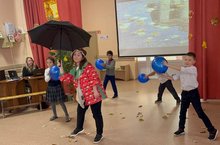 Сегодня учащиеся начальных классов встретились с Осенью совершили увлекательную прогулку по осеннему лесу, в котором нашли много разноцветных листочков и огромный зонтик, которые пригодились им во время исполнения танца и игры «Солнышко и дождик», водили хороводы, читали для гостьи стихи и пели песни. Порадовало детей появление на празднике сказочных персонажей. На этот раз к ребятам пришел Домовой, который поиграл с ними в осенние игры и станцевал веселый танец. Любое время года прекрасно - главное, уметь ему радоваться.