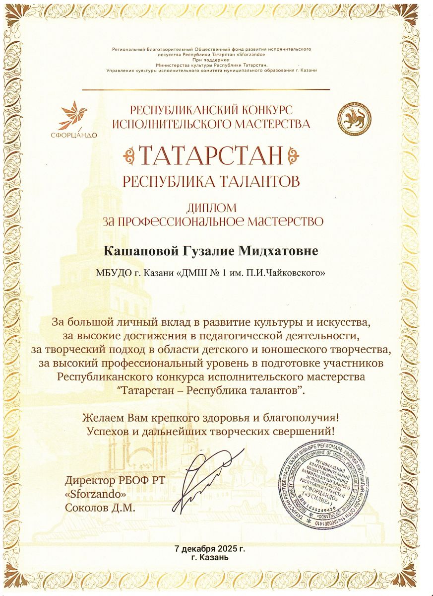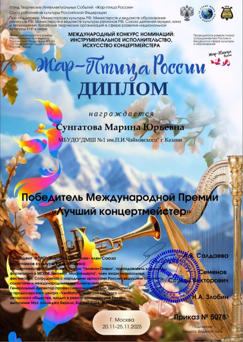 Международный конкурс-фестиваль "Поколение-2025" - Диплом Сунгатовой М.Ю.;