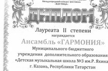 7-10 апреля в Казани состоялся I Международный конкурс-фестиваль "Звездная симфония" Жюри, в состав которого вошли профессора Московской Государственной Консерватории им. П. Чайковского, Россиийской Академии музыки им. Гнесиных, МГИК и лауреаты международных конкурсов по достоинству оценило выступление учащихся нашей школы: