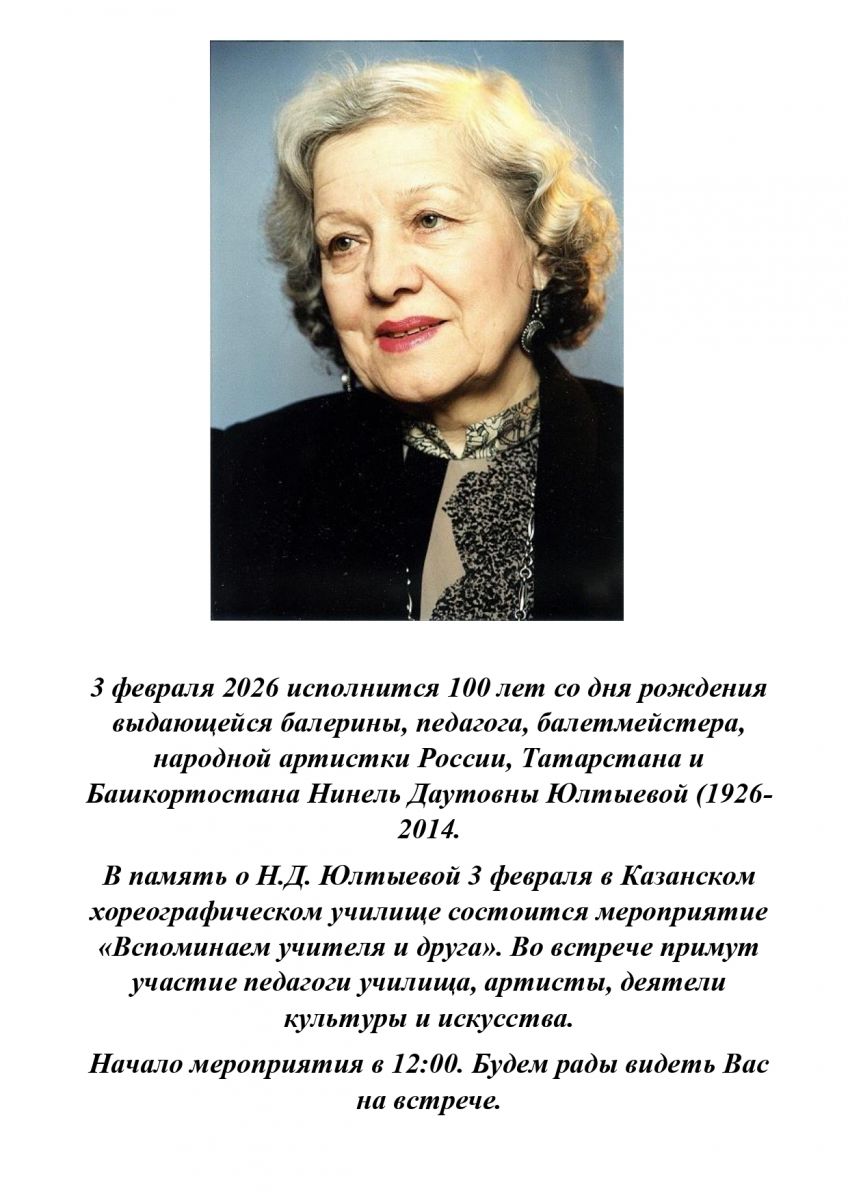 Сегодня, 3 февраля, отмечается 100-летие со дня рождения народной артистки Российской Федерации, Республики Башкортостан и Республики Татарстан Нинель Юлтыевой.