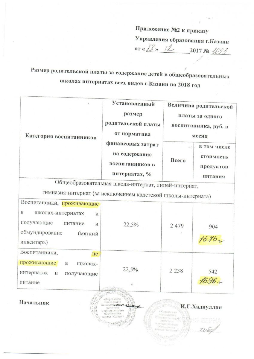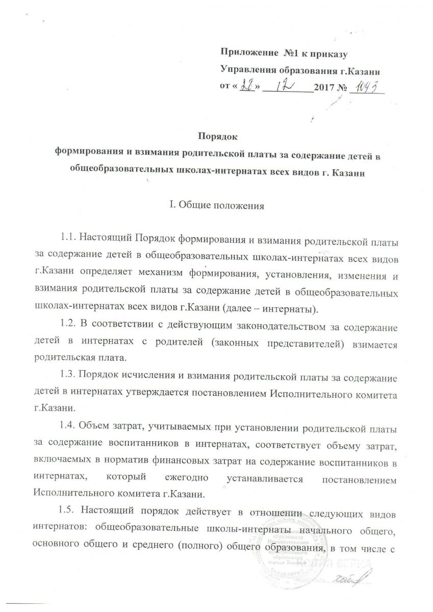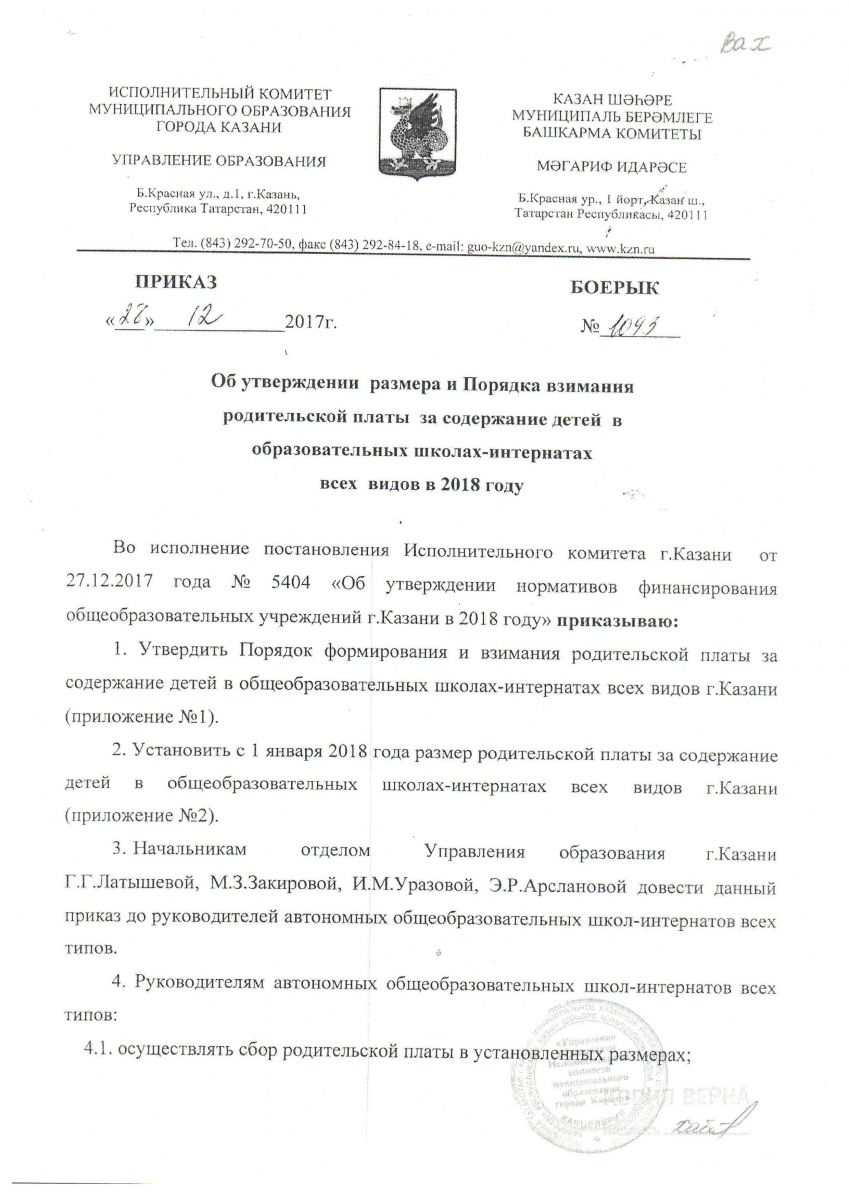 ПРИКАЗ об утверждении размера и Порядка взимания родительской платы (л1., л.2)