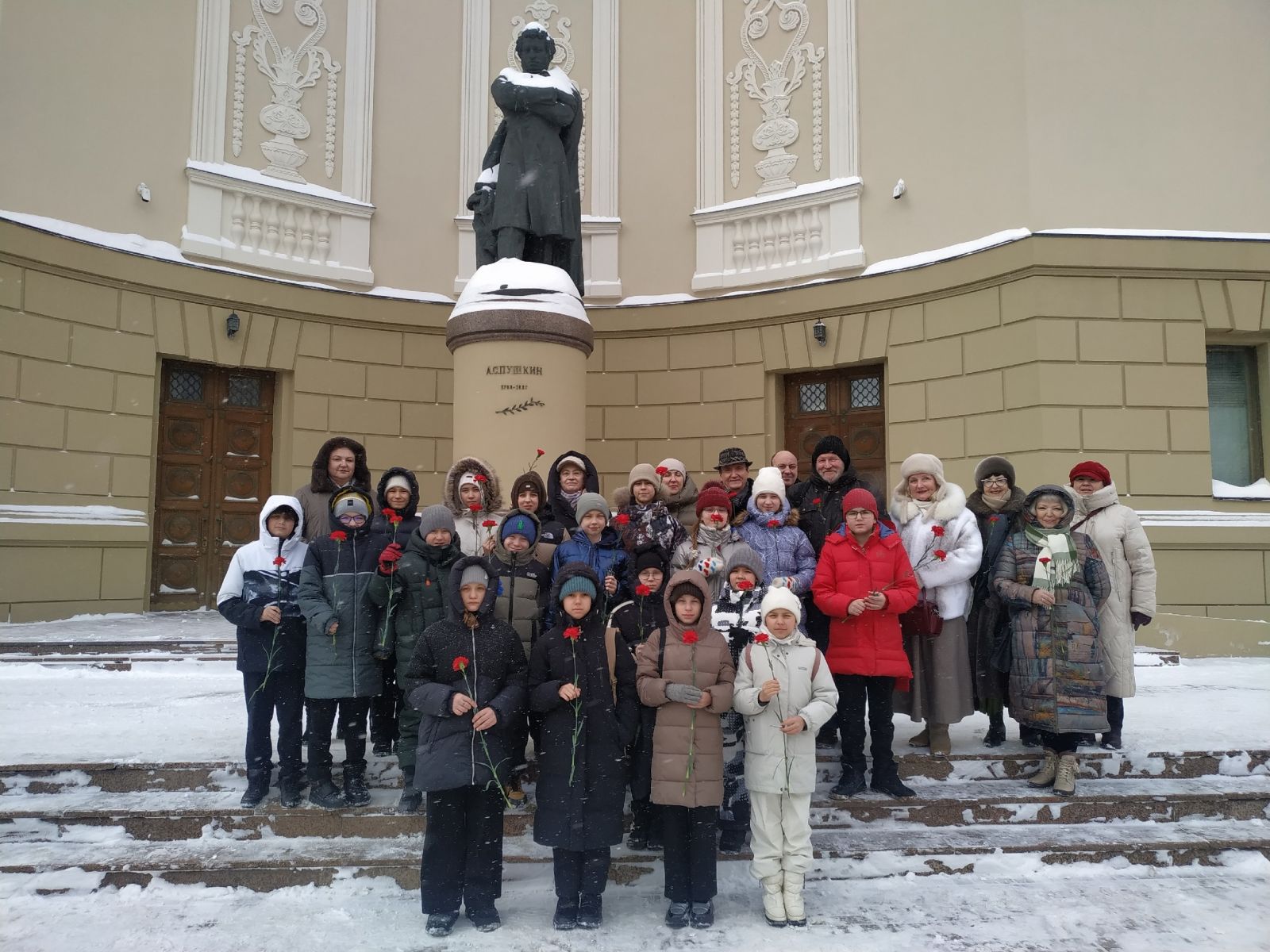 Опубликовано: 10.02.2026Сегодня, 10 февраля, в день памяти А.С.Пушкина учащиеся и учителя лицея, сотрудники и представители КЦ А.С.Пушкина и представители общественности Казани возложили цветы к памятнику поэта.