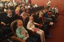 Сегодня ученики 1,2,3 и 4 классов совершили выезд в театр кукол "Экият" на представление "Водяная" .