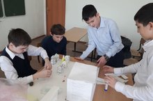 ТАССРның 100 еллыгына багышланган проектыбыз һәрдаим эшләп тора. Биредә һәр сыйныф та зур көч куя, үз өлешен кертә. 7 “Б” сыйныфы да бу эштә бик актив катнаша, мәсәлән, бүген алар сынлы сәнгать дәресләрендә проект эшчәнлеге кысаларында ТАССР белән бәйле торак комплексы, фәнни үзәк, шәһәр үзәге төркемнәре буенча макетлар ясадылар.