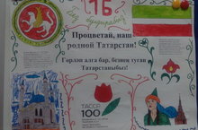 ТАССРның 100-еллыгына багышланган проектыбыз һәрдаим эшләп тора. Биредә һәр сыйныф та көч куя, үз өлешен кертә. 1 “Б” сыйныфы да “Гөрләп алга бар, безнең гүзәл Татарстаныбыз!” дигән стенгазета ясады. Анда республикабыз флагы, гербы, бүгенгәчә сакланып калган тарихи биналарның кайберләре (Сөембикә манарасы, Кол Шәриф мәчете) рәсемгә төшерелгән. Шулай ук ТАССРның барлыкка килү тарихы да кыскача искә төшерелеп үтә, Республикабызга алга таба матур теләкләр дә теләнә.