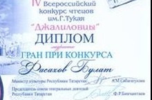 19 нчы апрельдә үткәрелгән IV Бөтенроссия Габдулла Тукай исемендәге шигырь сөйләүчеләр бәйгесе быел Муса Җәлил иҗатына һәм җәлилчеләр батырлыгына багышлап уздырылды. Әлеге бәйгедә 10 нчы сыйныф укучысы Фасахов Булат гран при яулады. Аны зур уңышы белән ихлас күңелдән котлыйбыз!