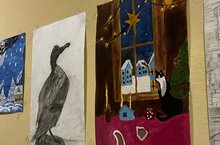 Һәр сыйныф яңа елга багышланган стена газеталары чыгара. Эшләрнең барысы да эчтәлекле һәм мавыктыргыч. Редколлегия членнары бик тырышып, чын күңелдән искиткеч газеталар чыгарганнар. Бүген әлеге эшләрдән күргәзмә оештырылды.