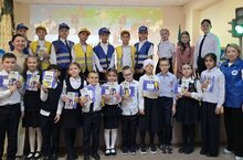 Яшь юл инспекторлары нәни укучыларга юл йөрү кагыйдәләре, юл билгеләре, аларның мәгънәләре турнында сөйләделәр, бергәләп җырлар башкардылар, флешмоб биеделәр.