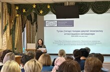 Казан федераль университеты Филология һәм мәдәниятара багланышлар институтының гомуми тел белеме һәм тюркология кафедрасы доценты, филология фәннәре кандидаты һәм комиссия рәисе Гөлназ Ринатовна Мөгътәсимова “Татар теленнән дәүләт йомгаклау имтиханнарын үткәрү үзенчәлекләре һәм нәтиҗәләр” темасына чыгыш ясады.