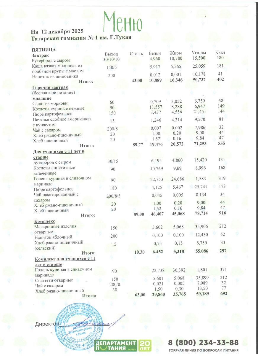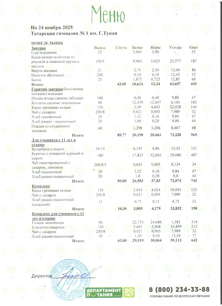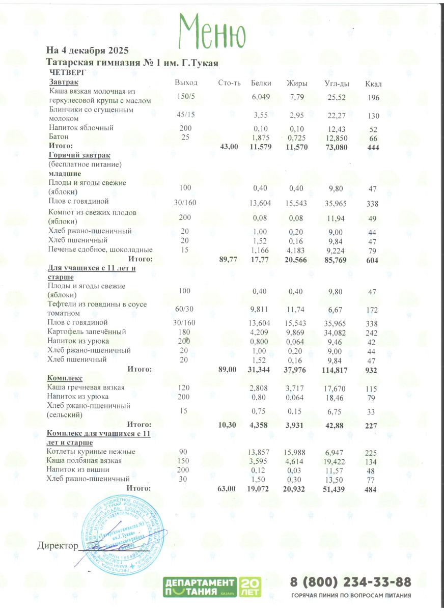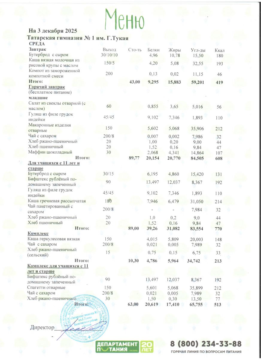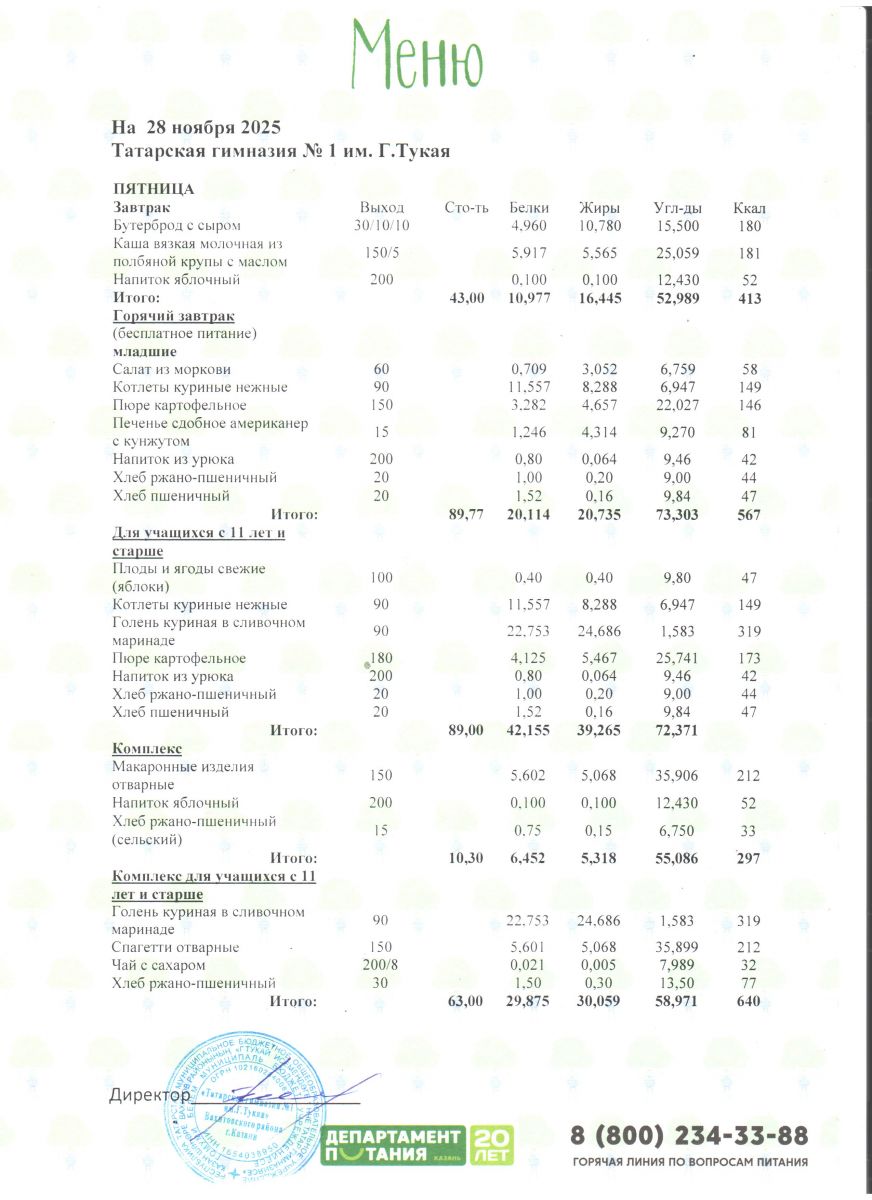 3. Диетическое меню: диетическое меню в образовательной организации отсутствует.