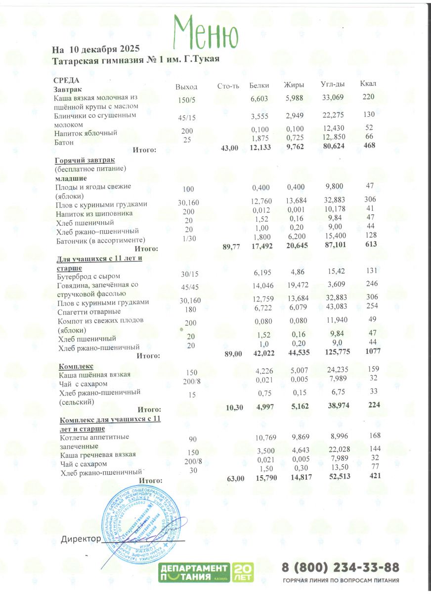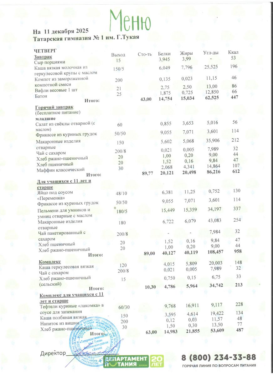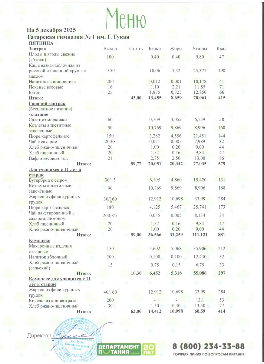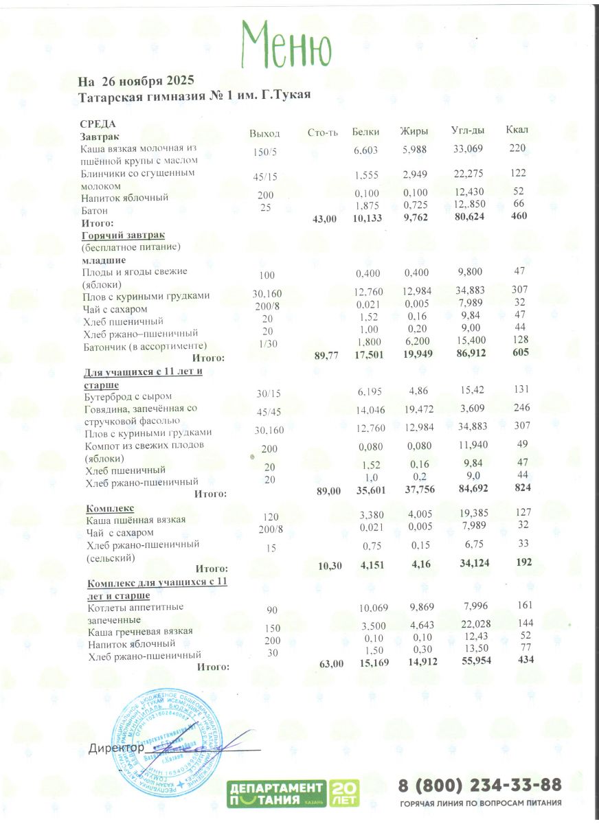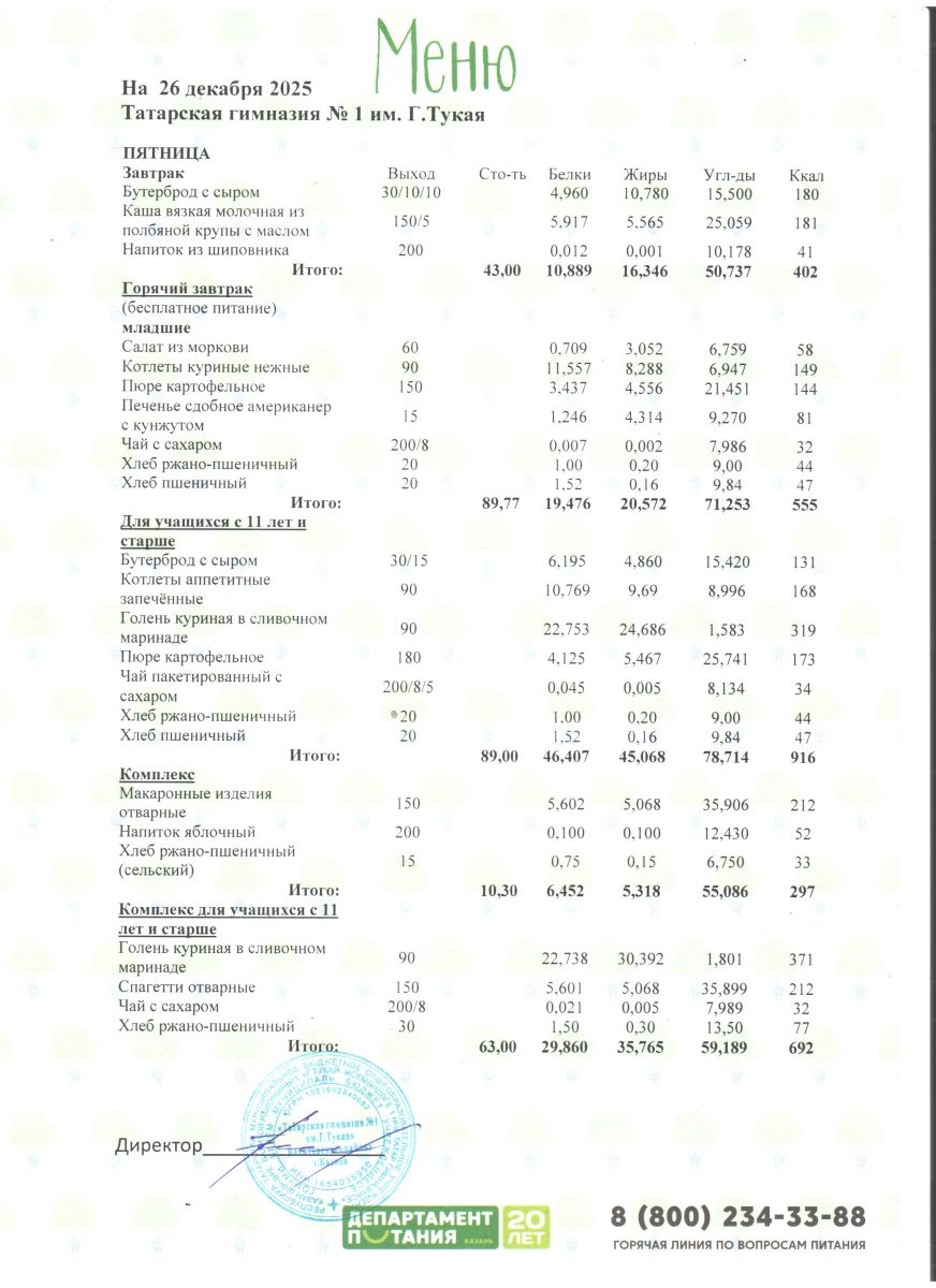 3. Диетическое меню: диетическое меню в образовательной организации отсутствует.