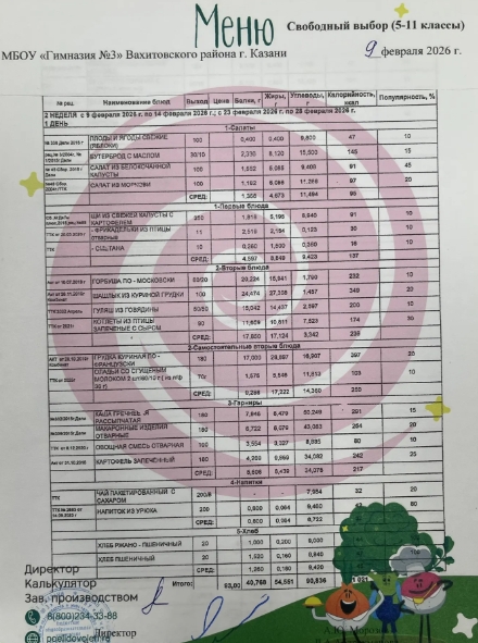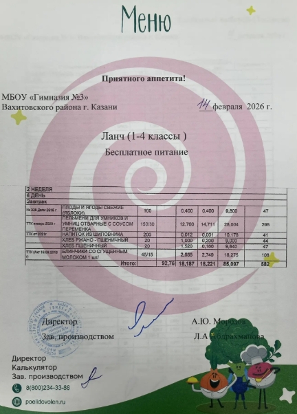 Меню ежедневного горячего питания для обучающихся 1 – 4 классов и 5 – 11 классов
