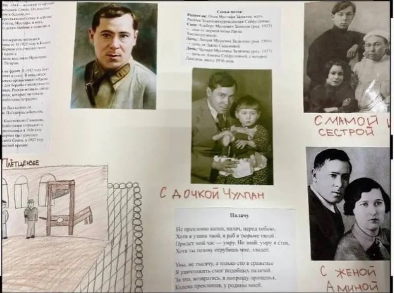 Юные таланты вдохновились его наследием, создали яркие стенгазеты, воплотив строки его стихов в рисунках и с трепетом выучив бессмертные произведения поэта. На стенах классов появились красочные коллажи, где стихи Джалиля гармонично сочетались с детскими рисунками, отражающими их понимание и восприятие поэзии. Каждая стенгазета была уникальной, неся в себе отпечаток индивидуальности и творческого поиска их создателей.