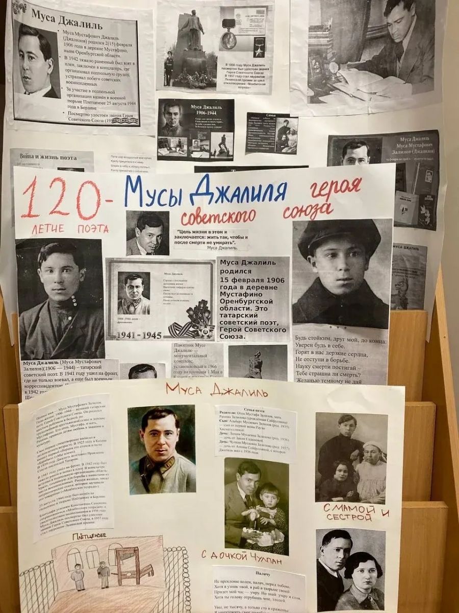 15 февраля исполняется 120 лет со дня рождения легендарного татарского поэта и Героя Советского Союза Мусы Джалиля, лауреата Ленинской премии, чьё имя стало символом мужества, верности Родине и силы поэтического слова. В преддверии 120-летия со Дня рождения Мусы Мустафовича Джалиля в нашем лицее прошли различные мероприятия.