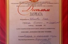 Наш лицей достойно представила ученица 11Б класса – Иванова Анна. Она была награждена дипломом лауреата.