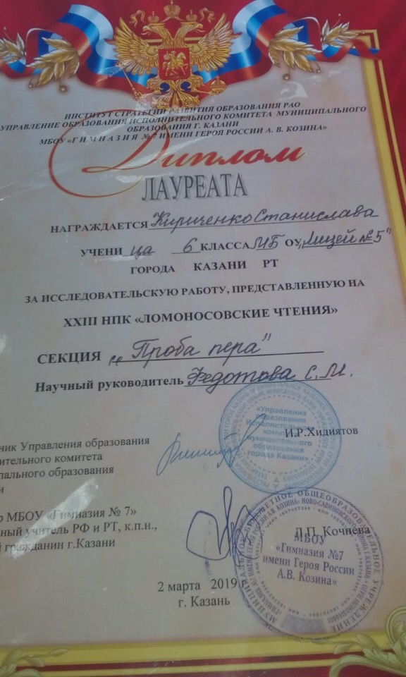 16 марта в гимназии №7 Ново-Савиновского района состоялась XXIII городская научно-практическая конференция «Ломоносовские чтения» для учащихся 8-11-х классов общеобразовательных организаций Казани.