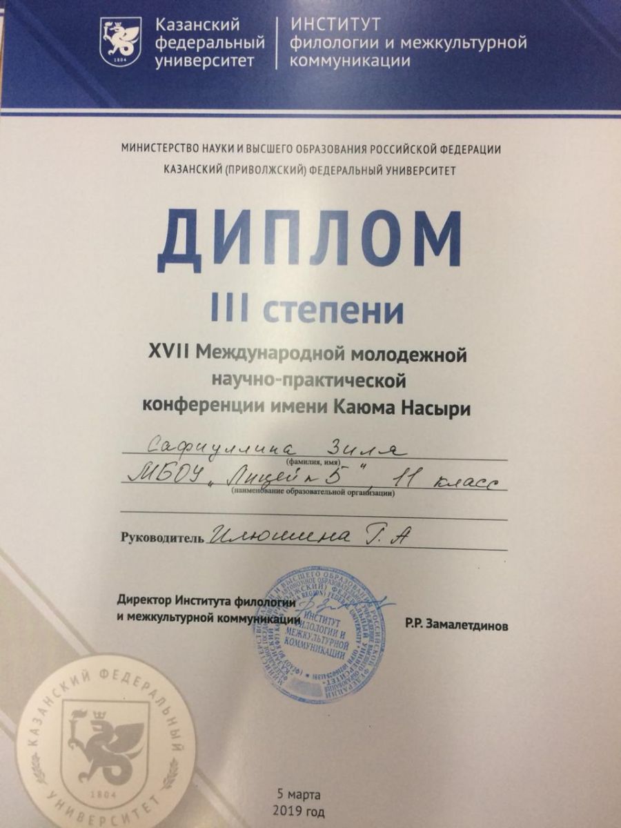 5 марта в г.Зеленодольске в МБОУ «Гимназия №10 Зеленодольского муниципального района РТ прошла XVII Международная молодежная научно-практическая конференция имени Каюма Насыри. На конференции участвовали: