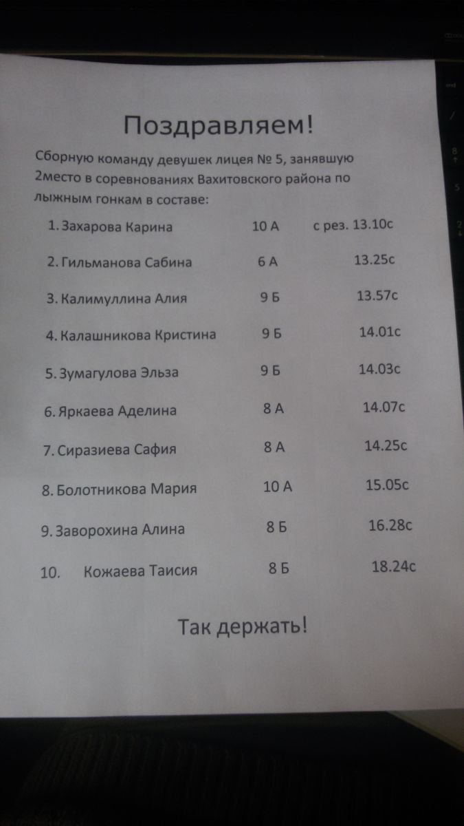 Поздравляем сборную команду девушек лицея, занавшую второе место в соревнованиях Вахитовского района по лыжным гонкам! фото1