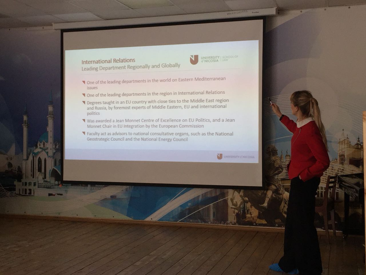 2 марта 2018г. в рамках профессиональной ориентации, оказания профориентационной поддержки учащимся 10- классов в процессе выбора профиля обучения , образовательной организации ,сферы будущей профессиональной деятельности, состоялась встреча представителем Кипрского университета расположенного в столице Республики Кипр Никосии - Косьян Евгенией и представителем Бизнес -центра образования за рубежом "Сакура" в г. Казань - Галимовым Ильдусом —которые рассказали обучающимся об образовании за рубежом и о самом престижном из шести университетов Республики Кипр.