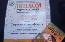 Поздравляем творческую студию «Феникс» (руководитель Ингачева Елена Борисовна) с успешным выступлением на Международном конкурсе-фестивале искусств «Золотая стрекоза».