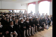 После праздничной линейкидля первоклассников прошел первый в их жизни урок.Родители настроили свои фотокамеры, ведущие произнесли напутственные слова, а первоклассники, с замиранием сердца ждали, когда начнется их первый урок. Мальчики в красивых синих костюмах, девочки с огромными белыми бантами скрываясь за огромными букетами цветов, взявшись за руки, прошли в актовый зал на спектакль подготовленный театром – студией «Непоседы».