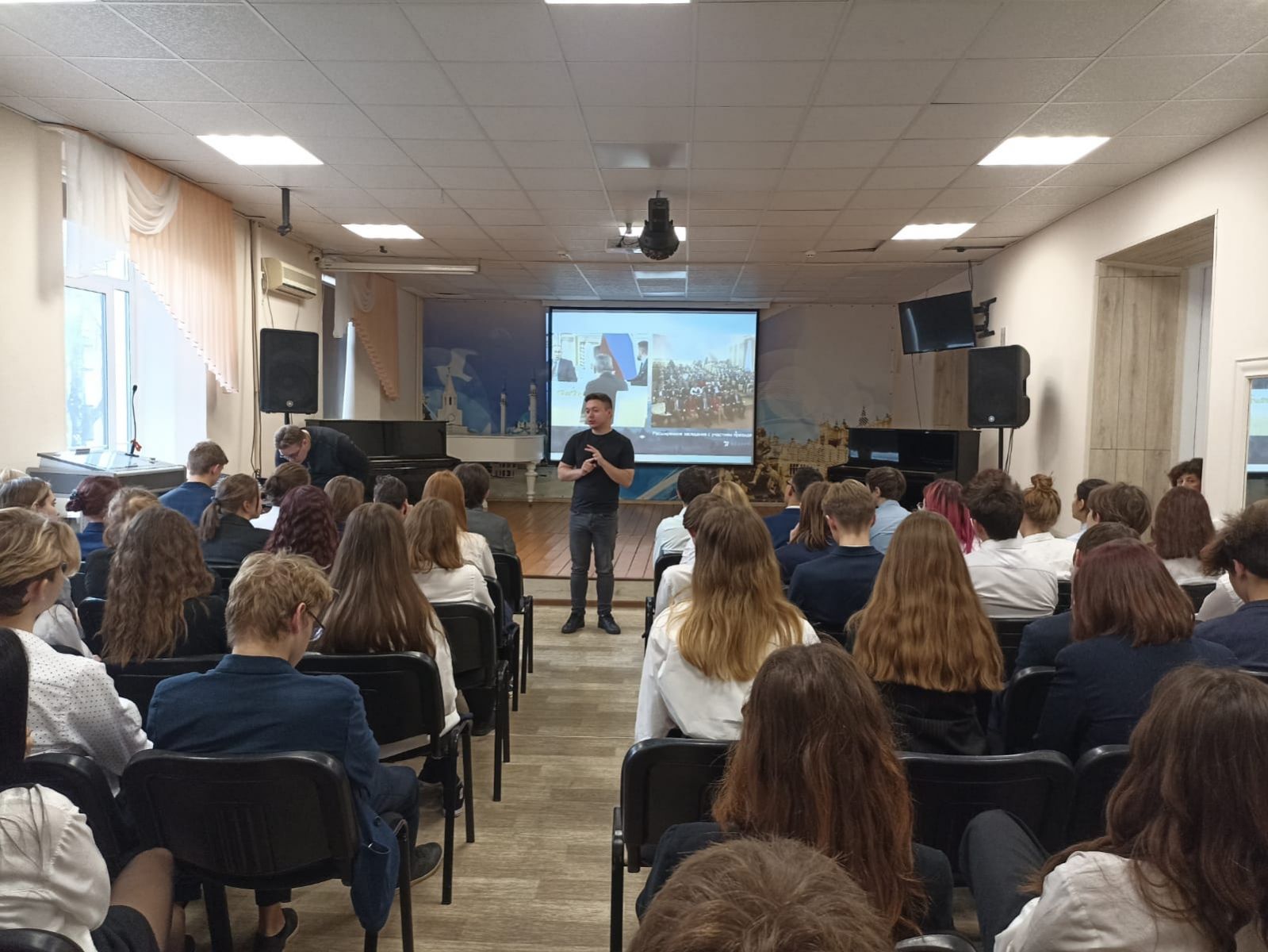 21 ноября учащиеся 4а, 5а, 6а, 7а, 8а, 8в, 10а классов лицея посетили концерт Государственного ансамбля фольклорной музыки Республики Татарстан "Жырлы - монлы шигърият", который прошел в Татарской государственной филармонии им. г.Тукая. Концерт - мастер-класс под руководством заслуженного артиста России, народного артиста Татарстана Айдара Файзрахманова детям очень понравился. Ансамбль выступал в 45 странах и добился больших успехов, прославился на весь мир. Ученики стоя аплодировали стихам, песням, живому голосу артистов.