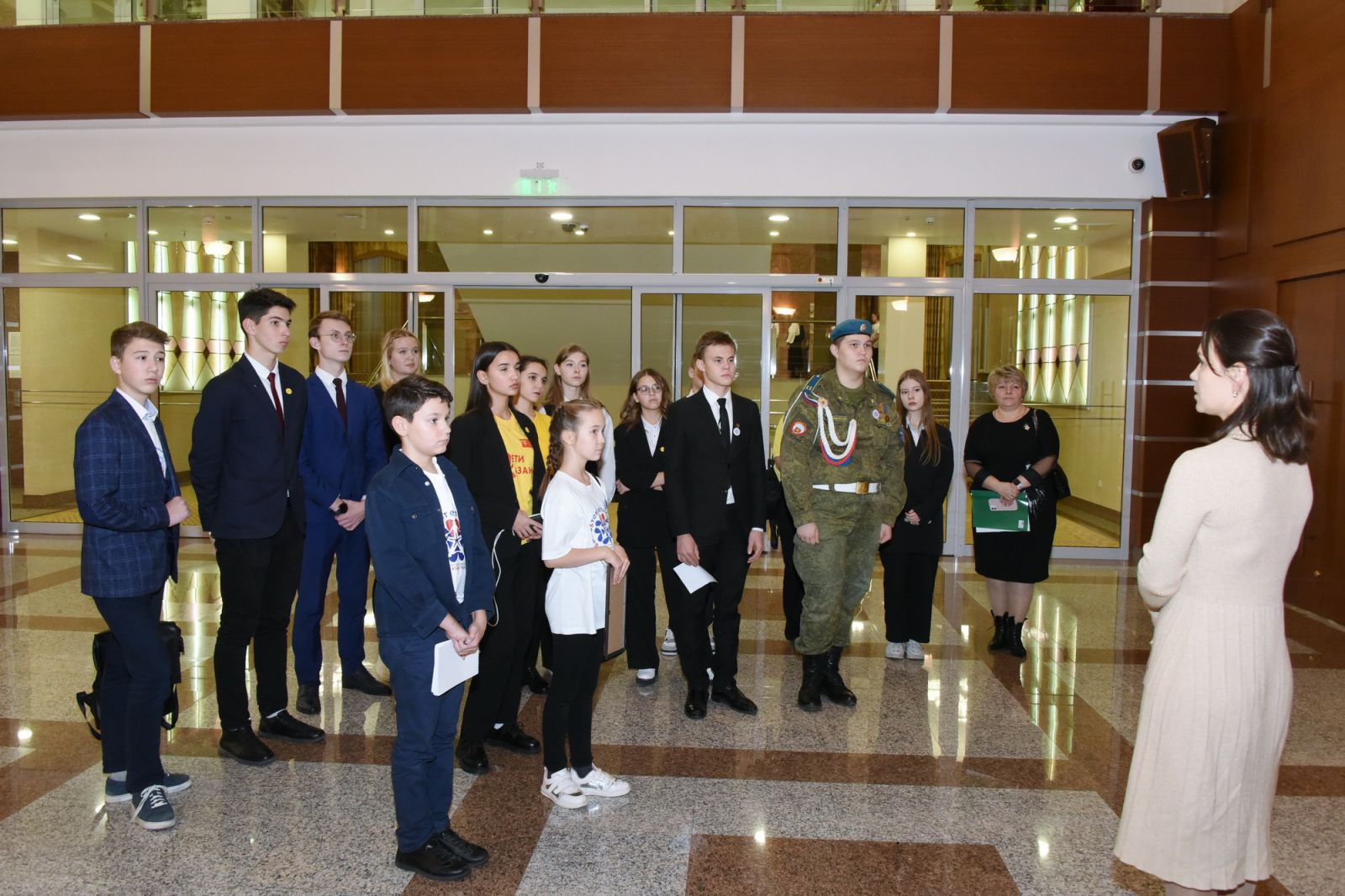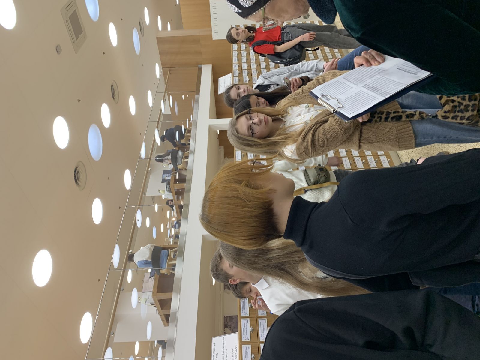 12 ноября ученики 7 а класса совершили увлекательное путешествие в мир книг. Экскурсия в Национальную библиотеку стала для детей открытием волшебного и необычно интересного мира. Они с большим интересом слушали рассказ сотрудницы библиотеки Фирдаус Муллануровны, познакомились с читальным и абонементным залом, с разнообразной коллекцией книг, журналов, с правилами обращения с книгами, узнали об изменениях, которые произошли благодаря модернизации. Центром внимания ребят стала Инсталляция посвященная истории татарской письменности, от рунических символов до кириллицы. Элементы, подвешенные к потолку, находятся в постоянном движении и могут принимать разные формы. Театральная студия Moñ , студия звукозаписи, музыкальная зона вызвали у ребят массу эмоций и впечатлений. Все они захотели стать постоянными посетителями новой библиотеки.