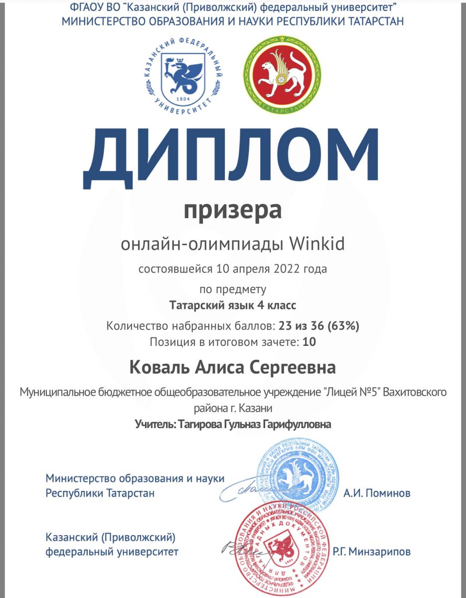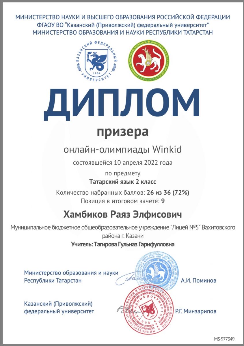 Рейтинговая олимпиада 2021/2022 по татарскому языку Winkid КФУ при содействии министерства образования и науки РТ.Удачи, радости и успехов!