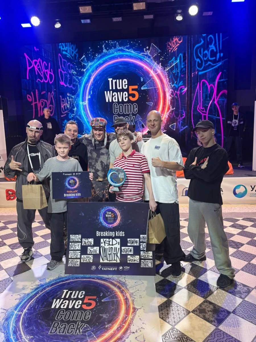 Опубликовано: 12.04.202612 апреля, в День космонавтики на всероссийском чемпионате Tru Wave в г. Альметьевск Давид "KidDavidik" Зайнашев из 6б взял золото в категории 11-13 лет