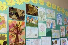 Ко Дню Пожилого человека начальная школа подготовила красивую выставку рисунков Краски осени.