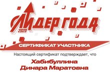 Поздравляем Хабибуллину Динару, ученицу 10а класса, с победой в конкурсе Лидер года-2020.