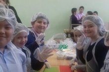 Учащиеся 4-го класса прошли мастер-класс и научились печь печенье вместе представителями департамента по питаю.