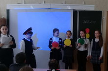 Перед каникулами для первоклассников зав. библиотекой нашей школы совместно с инспектором ОДН Фадеевой И. А. и с библиотекарем ЖД библиотеки Карповой А. И. провели мероприятие о правилах дорожного движения "Путешествие в страну Светофорию". Ученики из библиотечного кружка поставили сценку "Инспектор ПДД и Баба-Яга".Фадеева И. А. рассказала ученикам о правилах поведения на улицах города и на железных дорогах.В конце мероприятия раздали памятки о правилах поведения на улицах города.