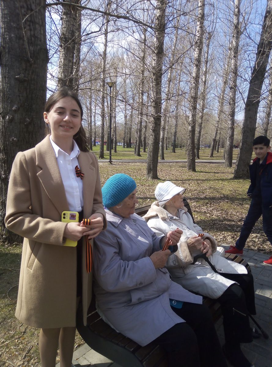 Дети раздавали символы уважения к исторической памяти победителей в парке им. К. Тинчурина, рядом со школой. Прохожие очень тепло реагировали на акцию, с удовольствием приняли участие в Акции, ведь Георгиевскя ленточка - знак памяти и уважения к подвигу отцов и дедов.