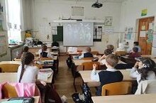 На уроке ребята отправились в захватывающее путешествие по страницам истории освоения космоса.В центре внимания - 65 лет с момента первого полёта человека в космическое пространство.