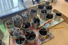 На уроке технологии 6В класс вместе с родителями изготовили окопные свечи для наших бойцов.