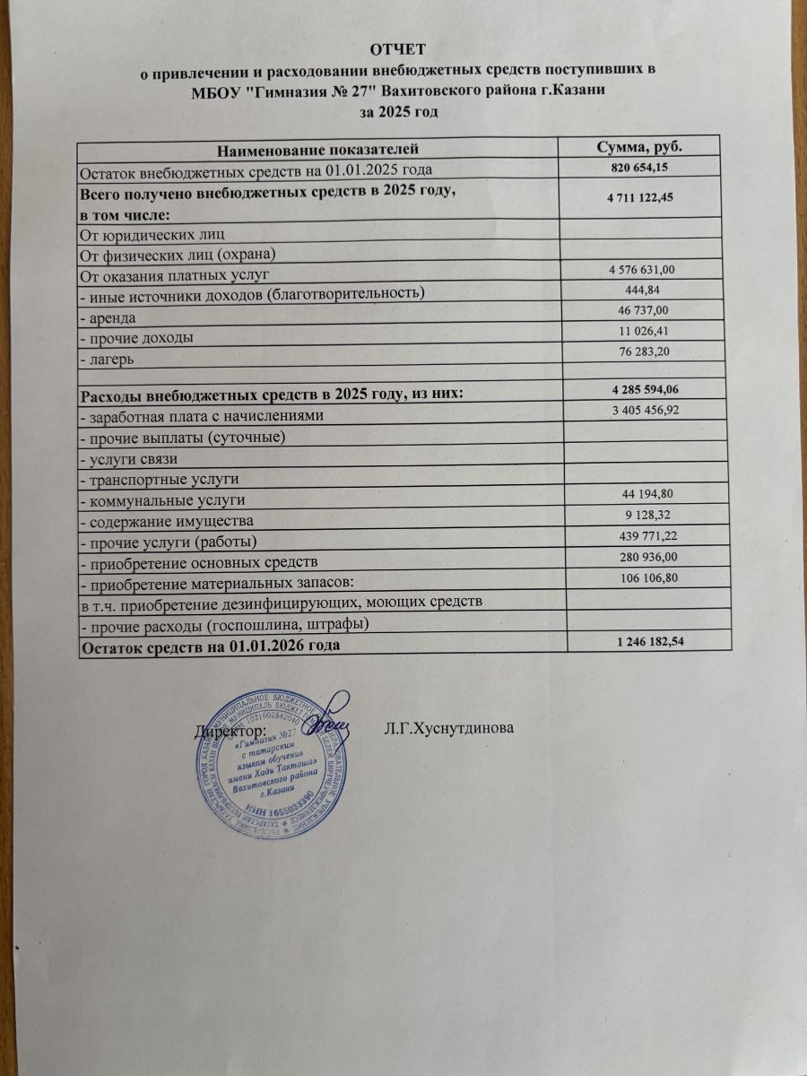 Отчет о привлечении и расходовании внебюджетных средств за 2025 год