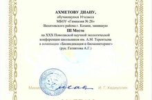 Стали известны результаты Поволжской экологической конференции им.Терентьева. Поздравляем Ахметову Диану с 3 местом в секции "Биоиндикация и биомониторинг". В очном этапе Конференции приняли участие 124 обучающихся общеобразовательных организаций из 19 муниципальных районов Республики Татарстан, г. Набережные Челны, г. Казань и гости из Республики Башкортостан, Республики Марий Эл, Владимирской области, Пензенской области и Пермского края. Диане и научному руководителю желаем дальнейших успехов !