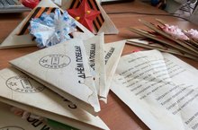Сегодня ученики гимназии 3-5х классов на уроках технологии, ИЗО на занятиях в группах продленного дня изготавливали поздравления для ветеранов (в виде открыток, поделок и т.п.) с праздником Великой Победы.