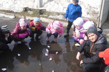 Весна... Текут ручьи. Любимое занятие детворы - пускание корабликов.