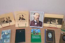 Сегодня заведующей библиотекой Малининой Э.Х. была организована выставка, посвящённая 200-летию со дня рождения Н.А. Некрасова