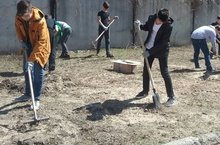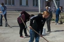 В гимназии начался субботник по санитарной очистке территории. Каждый класс вместе с классными руководителями приводят в порядок свой участок