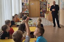 Сегодня в нашем детском саду состоялась очередная встреча воспитанников с инспектором ОГИБДД Гостевым М.С., Михаил Сергеевич провел профилактическую беседу с детьми подготовительной к школе группы, рассказал о том, как важно всегда соблюдать правила дорожного движения, идя в детский сад, гуляя по улице, как правильно вести себя на проезжей части или катаясь на велосипеде, подчеркнув при этом, что в тёмное время суток необходимо надевать одежду со светоотражающими элементами. Ведь, как правило, именно невнимательность и пренебрежение основами безопасного поведения приводит к печальным последствиям. Инспектор полиции отметил, что необходимо с ранних лет неукоснительно соблюдать правила дорожного движения и не поддаваться отрицательному влиянию. На протяжении встречи дети с большим вниманием слушали инспектора ОГИБДД и задавали интересующие их вопросы. В конце встречи Михаил Сергеевич пожелал детям быть осторожными, внимательными и беречь себя на дороге.
