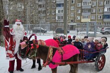 Ничто не вызывает такого эмоционального восторга у детей, как близкое общение с животными, особенно с необычными, которых нет возможности видеть в повседневной жизни. Чтобы порадовать детей и в очередной раз развивать в ребёнке лучшие чувства и любовь к животным, в нашем детском саду для воспитанников было организованно маленькое увлекательное путешествие: катание на пони с Дедом Морозом. Восторгу детей не было предела! Они получили массу положительных эмоций!