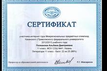 Лучших знатоков русского языка и литературы нашей школы Каратонову Анастасию и Полканову Альбину, учениц 11 класса А, с победой в первом этапе Межрегиональных предметных олимпиад Казанского (Приволжского) федерального университета 2012/2013 учебного года.