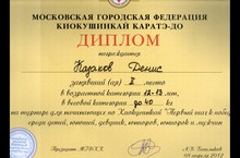 Поздравляем ученика 7а класса Казакова Дениса занявшего II место на турнире для начинающих по Киокусинкай "Первый шаг к победе", среди детей, юношей, девушек, юниоров, юниорок и мужчин, проходившего 8 апреля 2012 года в городе Москва. Желаем дальнейших побед!