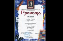 Грамотой за 1 место награждены ученики 5"а" класса ставшие победителями игры "Математическое домино" в рамках открытого турнира математических игр им. П.А. Широкова