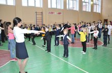 Начальная школа провела турнир по пионерболу, а среднее и старшее звено провели «Веселые старты». Во время перерыва группа поддержки нашей школы радовала своими танцами.