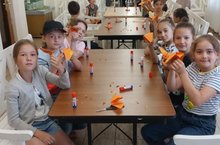 27 июня 2022г ребята 1-2 отрядов посетили мастер-класс "Оригами" в национальном музее РТ, остальные воспитанники лагеря играли в настольные игры. После обеда на площадке разучивали новые активные игры.