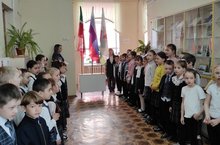 16 мая 2022г в школе была проведена еженедельная церемония поднятия флага и исполнение гимнов РФ и РТ перед уроками.